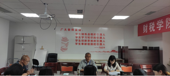 为顺利推进学院两委换届工作,以及按照省直机关党委要求,扎实推进2022年党员党费收缴工作, 2022年3月15日下午,财税学院全体党员教职工在行政楼512会议室开展主题党日活动。会议由财税学院副院长、教工党支部书记罗艾主持,院长、党总支副书记祝刚作有关讲话。