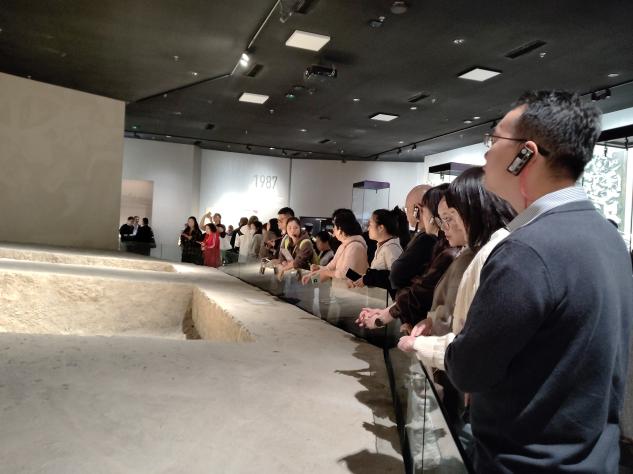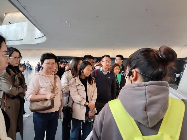 走进三星堆博物馆,犹如进入一个天马行空的梦幻世界,所见的每一件展品,都是与千年历史的对望。在讲解员的带领下,先后参观了“世纪筑梦”“巍然王都”“天地人神”等展陈,在讲解员的带领下,领略了青铜大立人像、青铜神树、青铜纵目面具等多种珍贵的文物魅力,了解了古蜀先民的吃、穿、住、手工业、农业及对外交流等方面的发展情况。大家在溯源历史、寻脉中华的过程中,对中华文化发自内心地崇敬,文化归属感、自豪感油然而生。也更加系统地了解了三星堆遗址科学发掘、传承保护和文化研究等方面的工作情况和取得的成绩,通过直面历史,也更加深刻地领略到了古蜀文明成果和中华文化的辉煌与魅力。