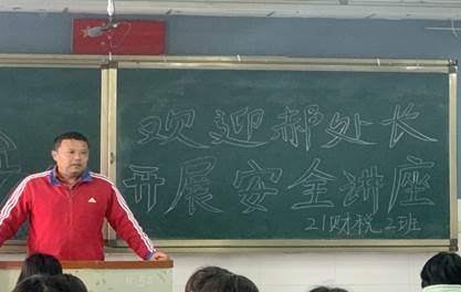 为贯彻国家“三全育人”教育理念,落实学院中层干部联系二级学院的工作,增强大学生安全意识,2022518日下午14:30,武装保卫部处长郝晓军来到财税学院21级财税大数据应用2班开展安全教育讲座。