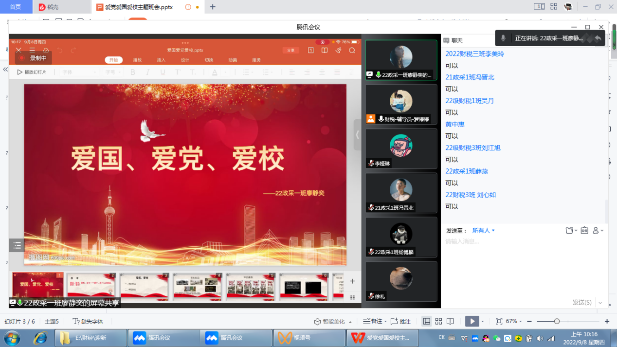 立德树人“扎深根”,党建引领显定力。为引导学生厚植红色基因,激发爱党爱国情怀。2022年9月8日上午,财税学院通过丰富多彩的线上形式开展爱党、爱国的入学教育第一课。课上,通过联播《觉醒年代》等红色影视经典、党史知识竞答、爱校视频讨论等方式情理深种、浸人心脾,极大激发了学生勤奋学习、报效祖国的使命感和自豪感,实现了增强学生的政治自信力、民族凝聚力和团队战斗力。