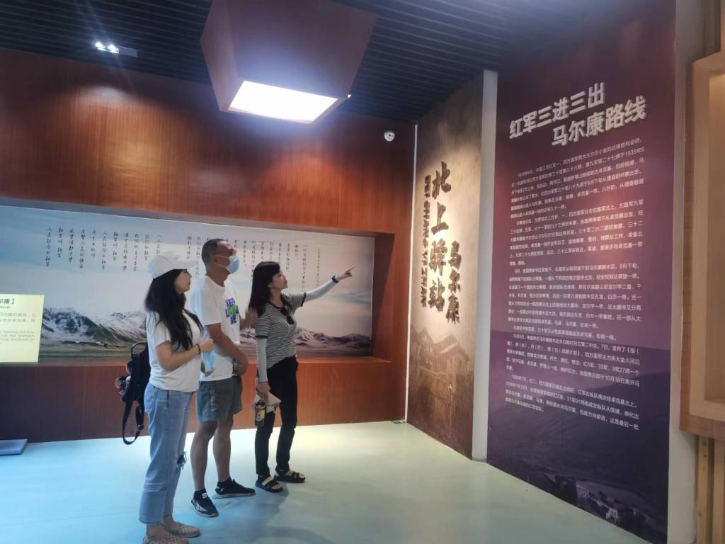 第三站,他们参观了马尔康红军长征纪念馆。纪念馆共分为万里长征、转战阿坝、北上驿站、英名永存、传奇故事、迈向新长征六个展板,以大量丰富的史料,独特的视觉,通过雕塑、展板、灯箱、场景再现等方式全面生动地展示了红军长征途经阿坝州,翻雪山过草地和建立革命政权时那段艰苦卓绝的革命奇迹。