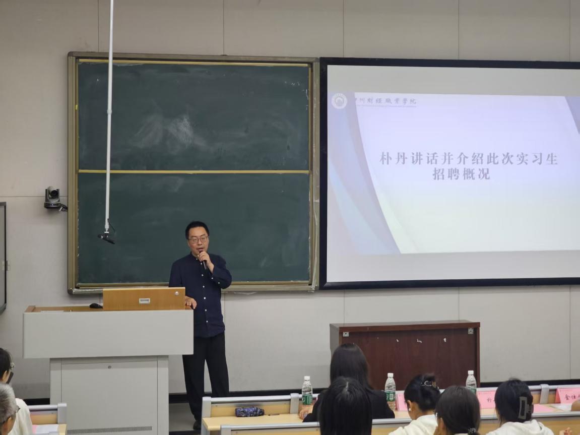 四川中志招标代理有限公司副总经理朴丹先生为同学们介绍本次实习生招聘概况,他提到,我公司作为学校的实训基地,不仅仅是实习平台,更是给同学们提供工作发展、就业的平台,希望各位同学踊跃面试,争取进入本公司,并在此处找到未来明确的目标。