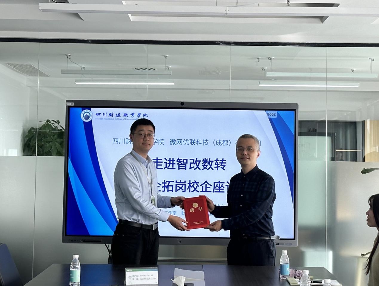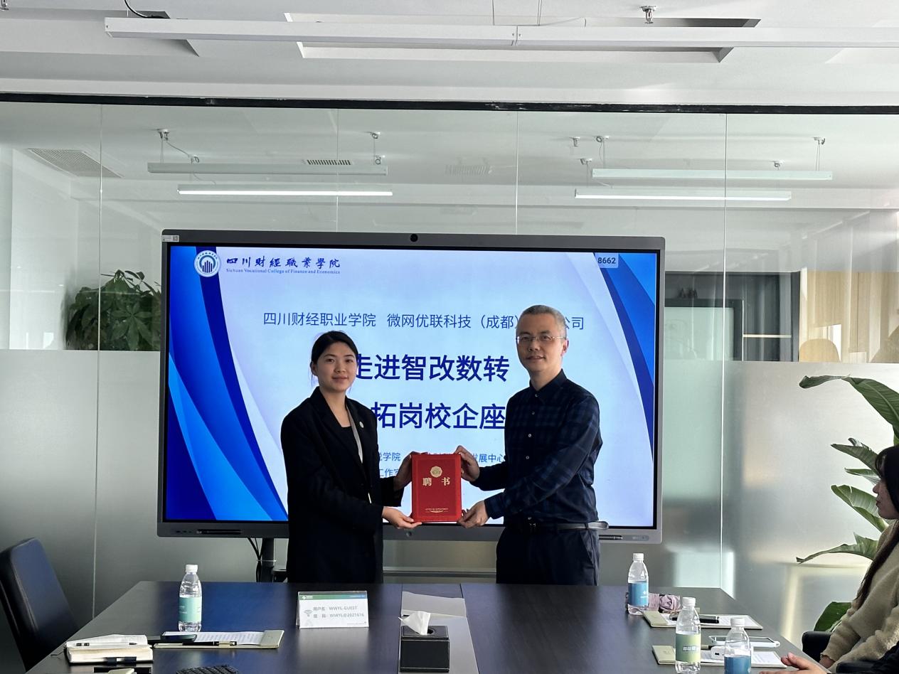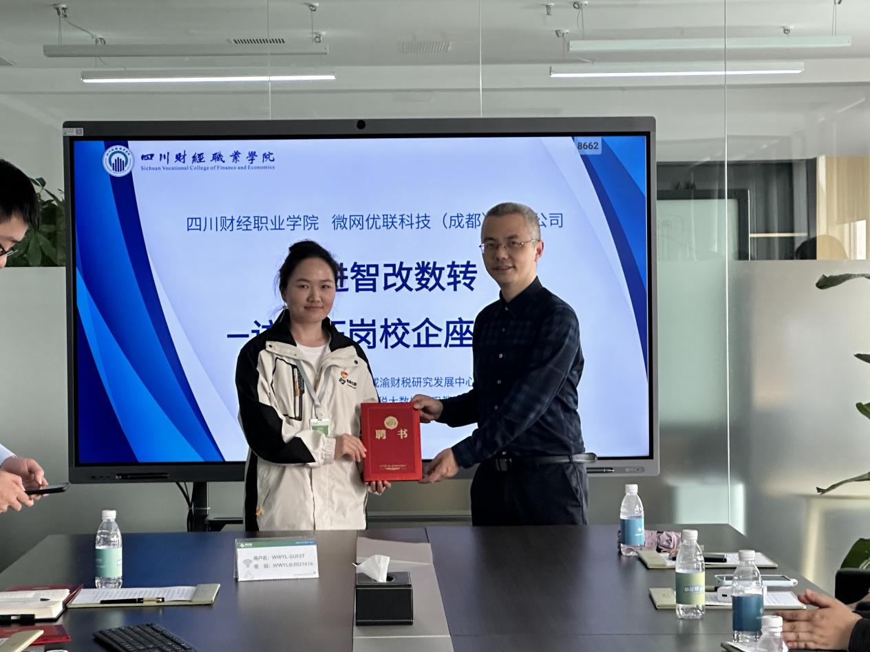 为进一步加强校企合作,座谈会上,财税学院院长杨毅为微网优联的企业导师颁发了聘书。这一举措标志着校企双方将携手共建“双师型”教师团队,企业导师将深度参与学院人才培养方案的制定与实施,助力学生职业素养与实践能力的提升。