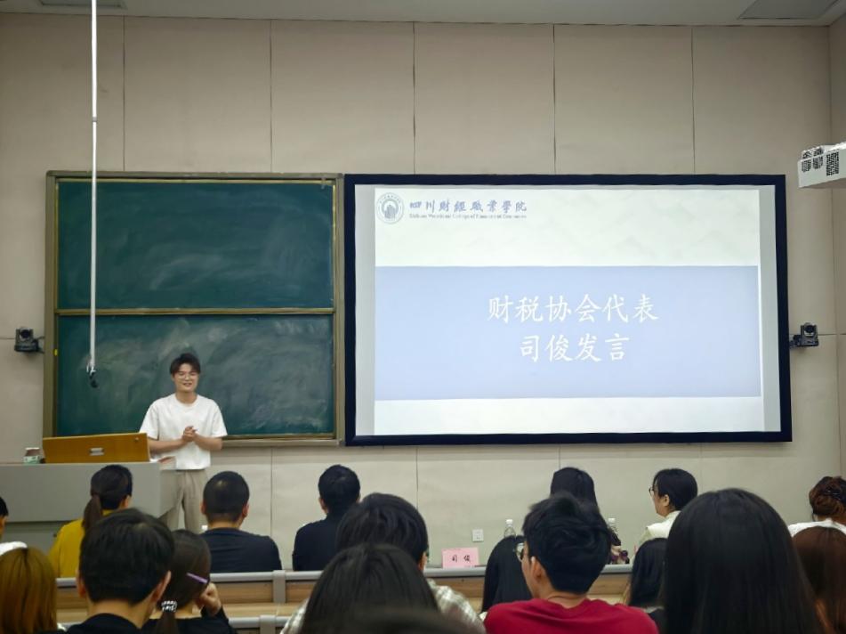 实习生代表邵灵熙结合实习经历分享感悟。她表示,通过实际业务场景的锻炼,课堂理论在实务中的指导价值得到充分印证,尤其在解决复杂问题时,专业知识成为破题的“钥匙”。她谈到,未来将进一步强化理论学习的系统性,同时提升实践应用的灵活性,努力向“精理论、通实务”的复合型财税人才目标迈进。