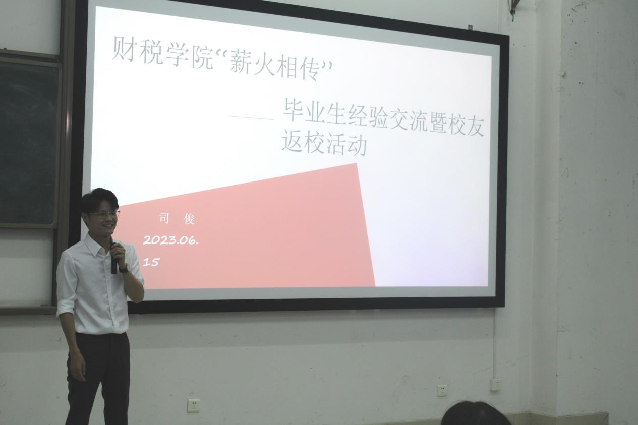 为帮助同学们更好地了解本专业就业项目,做好职业规划,进一步明确未来方向,2023年6月15日财税学院于至诚楼B113举办“青春就业大课堂”活动,诚邀学院2012级校友司俊主讲。活动由2022级财税3班郑杰主持,部分学生代表参与此次活动。