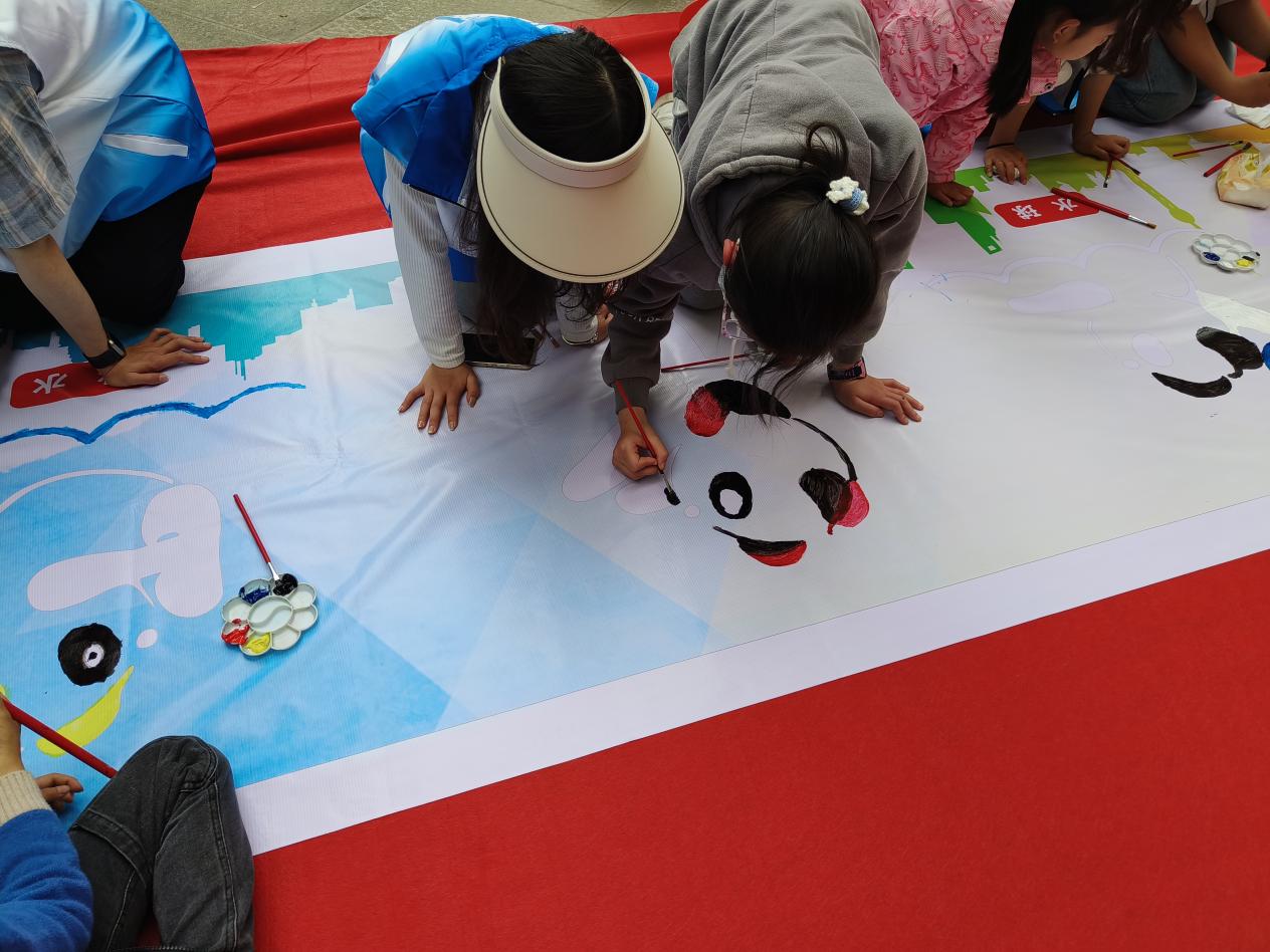 为营造社区“爱成都·迎大运·树文明”的浓郁氛围,扩充体育知识储备,增强社区青少年的城市自豪感,2023年月4月2日下午2:00,财税学院阳光青心协会组织20名财税志愿者与社区绘画班的青少年们在红咏社区惠民佳苑活动广场共同完成以大运为主题的墙体喷绘,让青少年们将绘画知识学以致用,将成都大运会的精彩展现给社区居民。