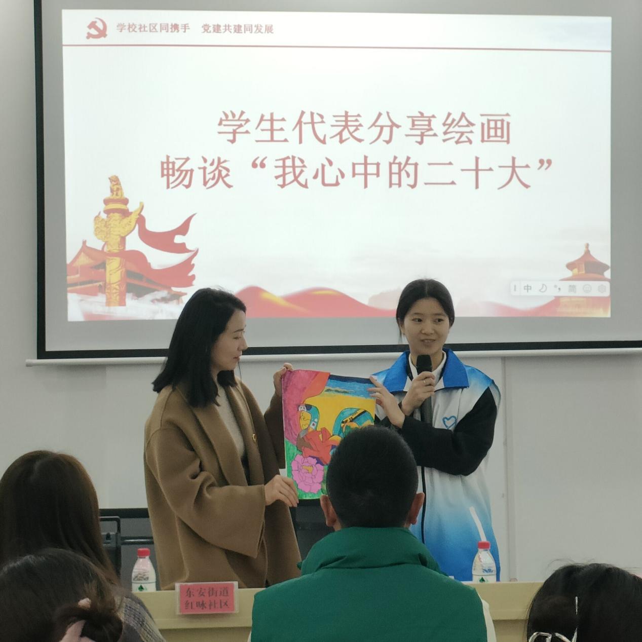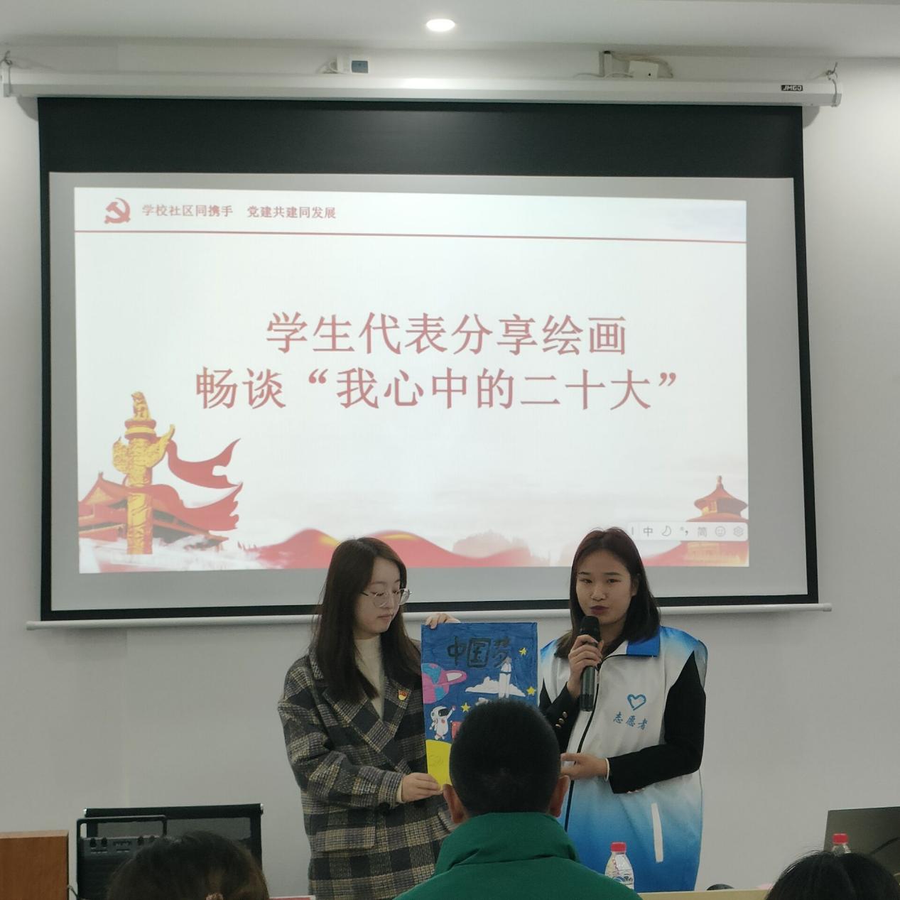 两位学生代表依次分享绘画,畅谈“我心中的二十大”