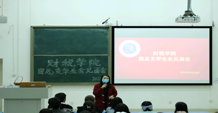 为了使21级学生干事更好的融入团总支学生会,财税学院学生会于2022年3月10日晚上8点在教学楼B110召开了团总支学生会见面会。财税学院党总支副书记陈露与谢倩茜老师受邀出席了见面会。