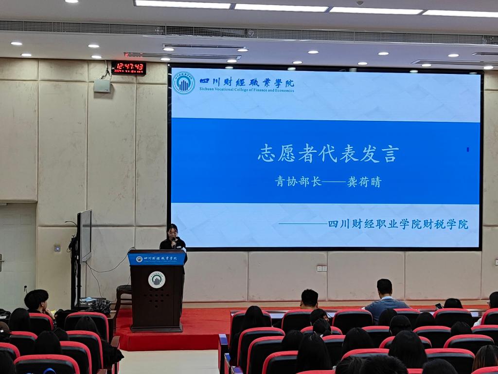 负责调动运动会志愿者的青协部长龚荷晴表示对参加此次运动会的志愿者致以感谢。龚荷晴讲到在运动会期间志愿者们一定要以服务为重,不怕苦不怕累,同比赛工作人员一起维持运动会高效、公正、有序地进行。