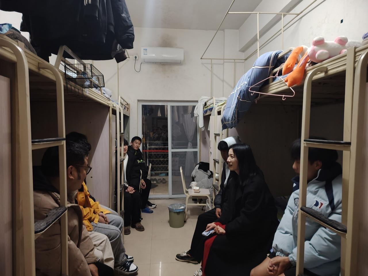 活动结束后,学院领导同学生会干部一同视察学生宿舍,走进学生之中,了解生活,学习上的所需与难处,同学生打成一片。