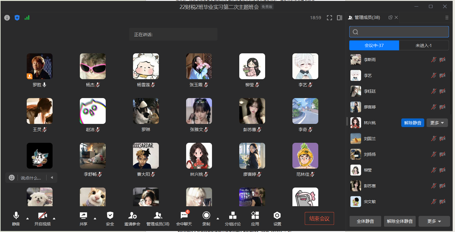 新春已过,开工在即。为进一步统一实习就业思想,了解学生近期工作学习动态,指导学生正确高效解决毕业离校等事宜,2月18日晚,2022级财税2班主持召开第二次毕业实习主题班会。会议由辅导员罗胜主持,全体学生参会。