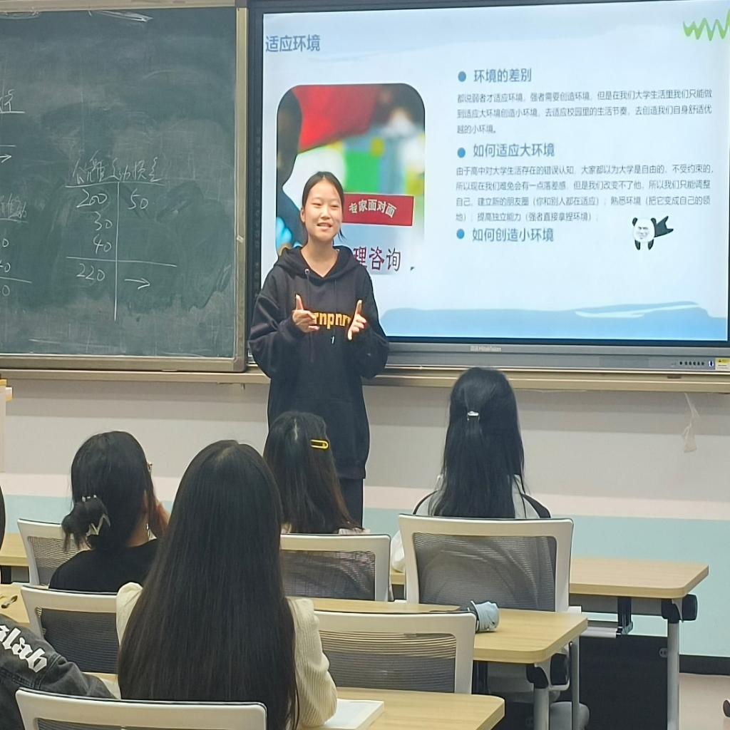 随后,心理委员向大家阐述了在未来学习与生活中可能会遭遇的各种挑战。在学习层面,随着课程难度的升级和学业负担的加重,同学们可能会感到焦虑与迷茫。对此,心理委员建议,制定一个切实可行的学习计划至关重要,它能帮助我们有效管理时间,提升学习效率。同时,保持一种积极向上的学习态度也极为关键,面对难题时,不应轻易气馁,而应勇于向老师及同学求助,共同克服难关。