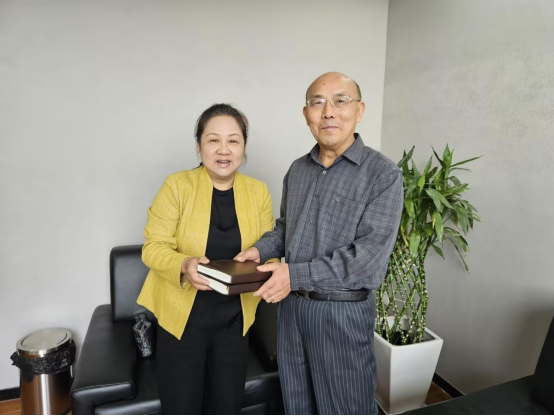 余坤和向张华赠送了两本沉甸甸的工作笔记本。他说,两个笔记本分别是自己任职四川省财政学校的最后一本笔记本和7790cnm必发集团的第一本笔记本,记录了为学校从中专到大专的转型升格忙碌的点点滴滴,书写了两代“川财人”的骄傲和自豪。余坤和对学院现在的发展表示了肯定,希望新一代“川财人”不负时代重任、担当作为,继续向财经职业教育本科事业而前行。