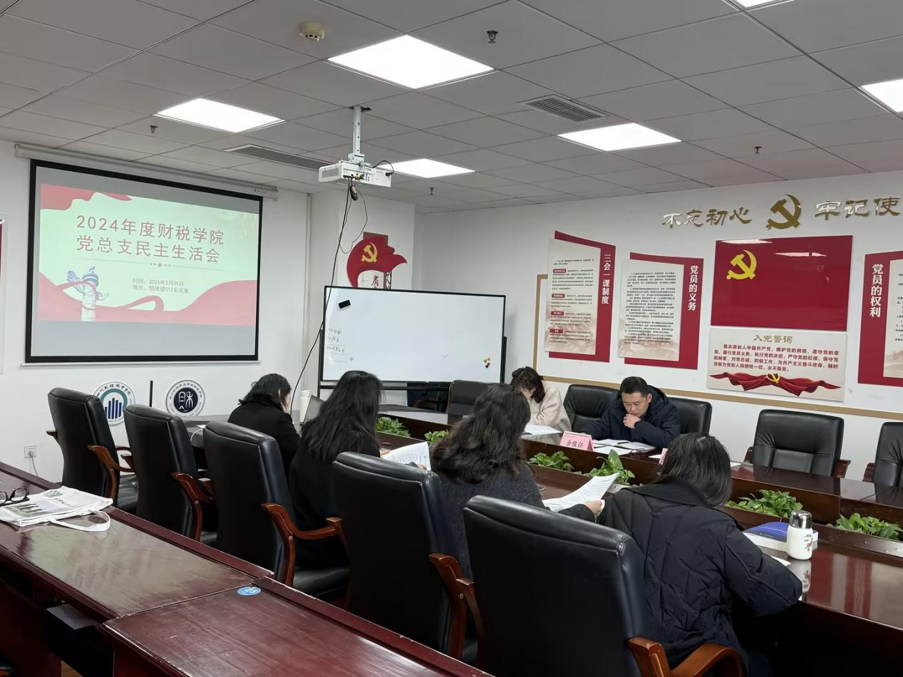 2月25日下午,财税学院党总支召开2024年度民主生活会,紧扣“深入学习贯彻习近平新时代中国特色社会主义思想,巩固深化党纪学习教育成果,综合发挥党的纪律教育约束、保障激励作用,为进一步全面深化改革、推进中国式现代化提供坚强纪律保证”主题,结合思想和工作实际进行自我检视、党性分析,开展批评与自我批评。