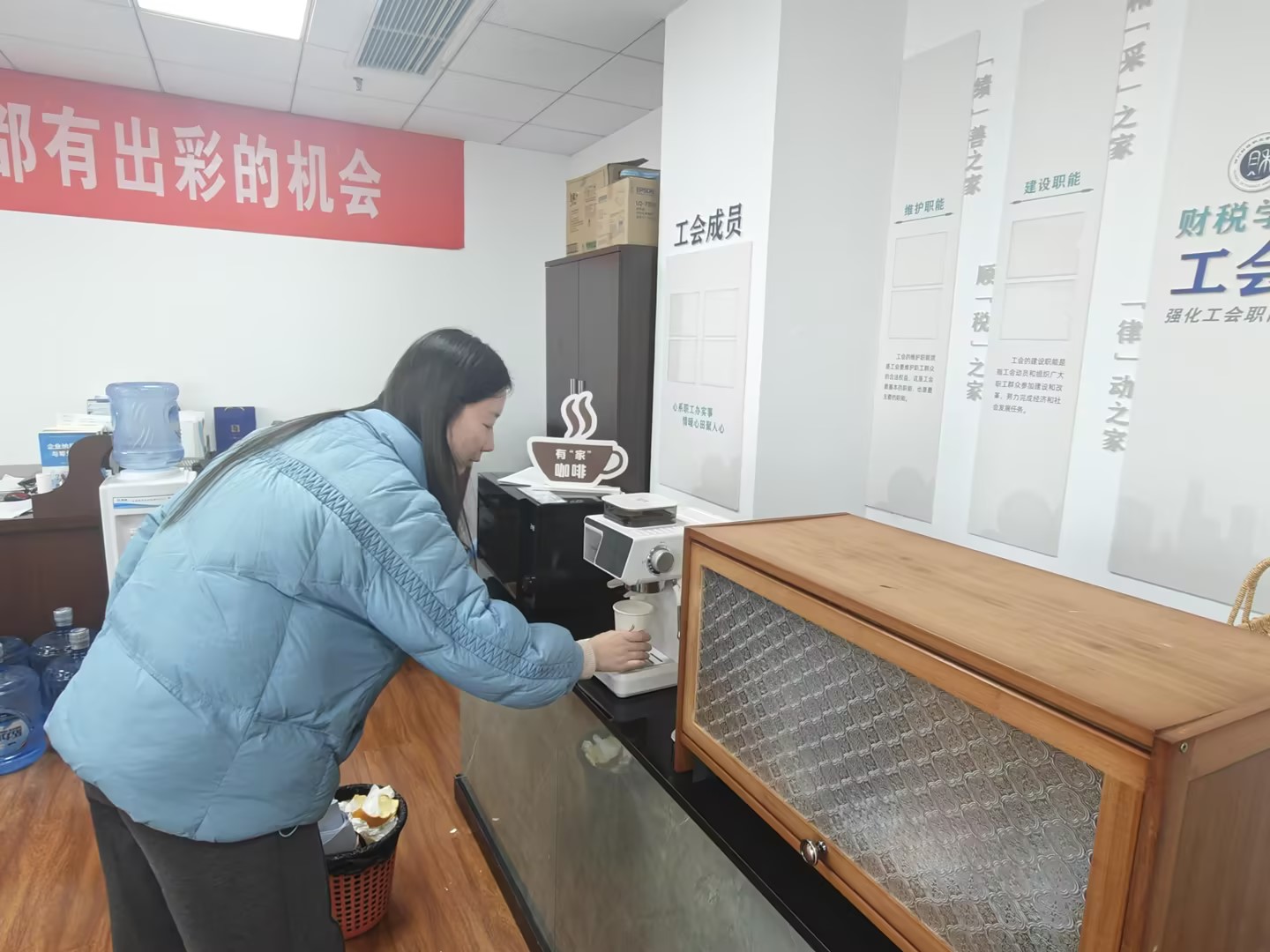 工会小家的建设,如同一场及时雨,滋润了教职工的心田。曾经,教职工们在忙碌的工作之余,缺乏一个可以放松身心、交流思想的场所。如今,工会小家的出现,完美地填补了这一空白。在513办公室的主阵地上,一面精心设计的职工小家文化墙,生动地展示着工会文化、优秀事迹与活动剪影,让教职工在潜移默化中受到文化的熏陶,增强对工会的认同感与归属感。沙发、桌子、咖啡机等设施一应俱全,无论是集会交流、宣传学习,还是品茶休闲、亲子娱乐,都能在这里找到合适的空间。教职工们纷纷表示,工会小家就像一个温馨的家,让他们在工作之余能够真正放松下来,享受家的温暖与舒适,满意度从最初的“满意”跃升至“非常满意”。