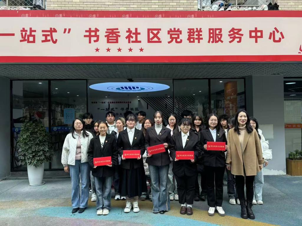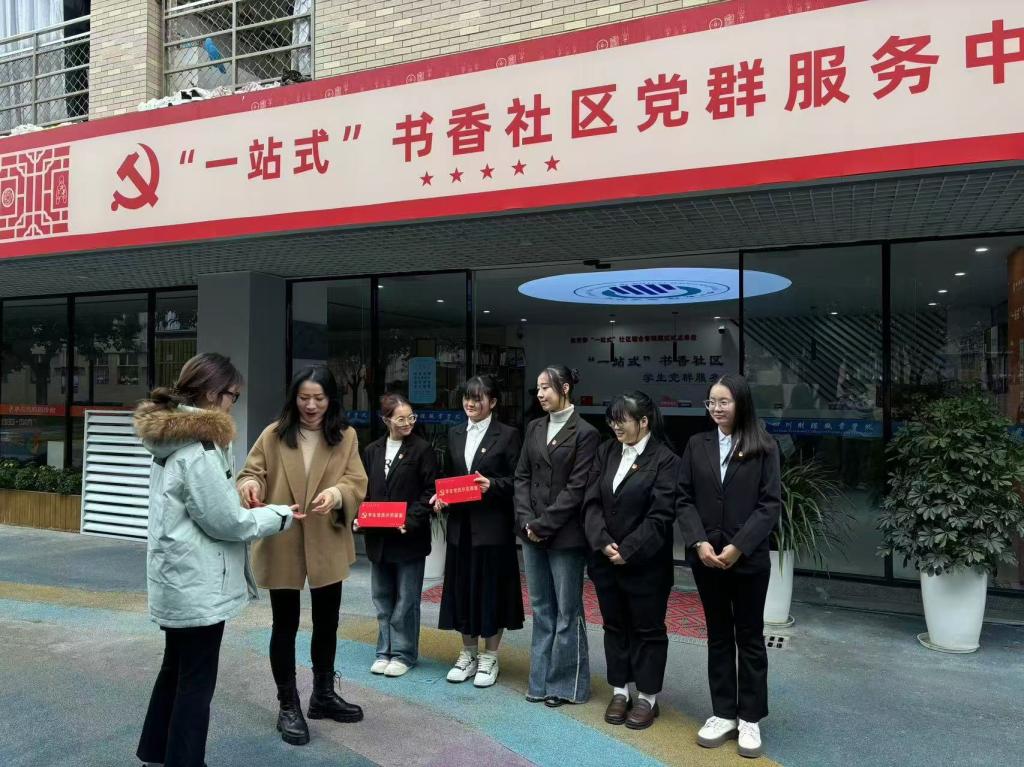 2024年11月18日12时30分,财税学院迎来了一场别具一格的授牌仪式,学院党总支书记陈露与专职辅导员邓岚共同在学生宿舍“一站式”书香社区党群服务中心楼下,为荣获“学生党员示范寝室”称号的寝室进行了授牌。