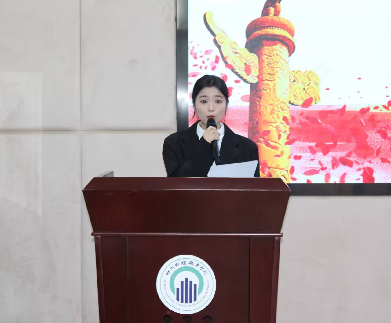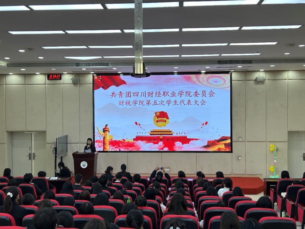 大会在激昂的国歌声中拉开序幕。会议初始,财税学院第四届团总支学生会主席康清玉对上一年度工作进行了总结。她回望了过去财税学院在校园文化建设等多个领域的丰硕成果,并相信新当选的学生代表们定能肩负起新的使命,展望未来,为学校发展注入新的活力,创造更辉煌的明天。