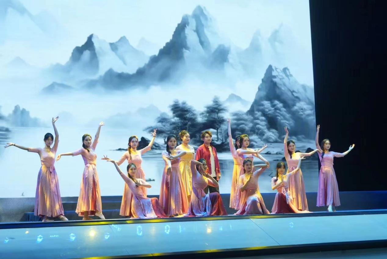 晚会节目精彩纷呈,由财税学院带来的歌伴舞《东风破》,更是把气氛推向了高潮。这首歌曲以其独特的中国风风格,通过东风破晓、烛火空留等场景,将离愁别绪和感慨时光流逝的情感融入其中。舞台上,舞者们的身姿轻盈曼妙,与歌曲中那悠扬动人的旋律相得益彰,仿佛一幅幅流动的画卷,引领着观众穿越至那既古典又浪漫的情感世界。他们不仅以精湛的舞艺诠释着歌曲的深层意境,更以青春的热情与活力,向初入校园的大一新生们传递出一种“青春如歌,扬帆起航”的积极信念,激励着每一位学子勇敢追梦,不负韶华。