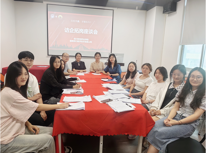 最后,罗艾一行与正在公司进行中期实习的22级财税大数据应用3班的同学们进行了交流,了解同学们中期实习情况,并收集中期实习过程中存在的困难与问题等。