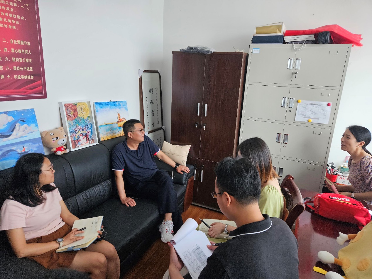 余书记在我院学生工作办公室与在场的学工人员亲切交流。他详细询问了学工队伍的工作情况、面临的困难和挑战,并对大家在日常工作中所付出的辛勤努力表示了高度赞扬和衷心感谢。财税学院党总支书记陈露代表学工团队针对近期工作以及学院学工队伍做了充分的汇报。余书记表示,学生工作是学校工作的重要组成部分,学工队伍是学校稳定发展的重要保障,希望大家能够继续发扬优良传统,讲情怀、敢担当、落实处,不断提高工作水平,为学生的成长成才和学校的发展做出更大的贡献。