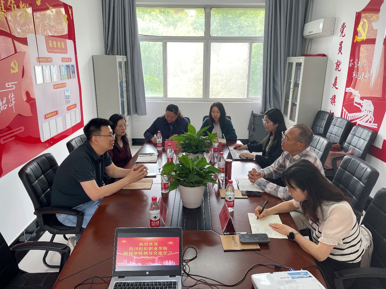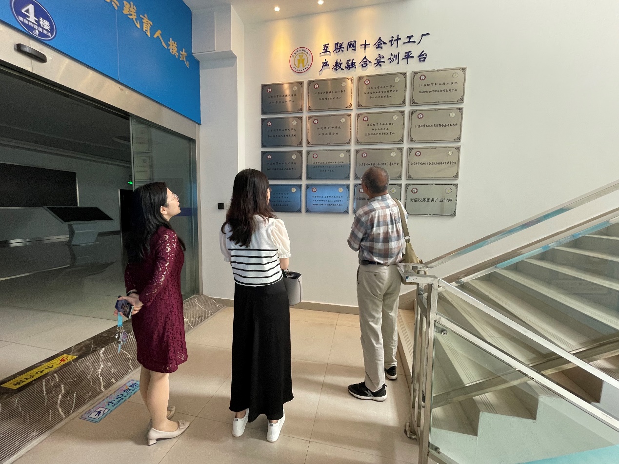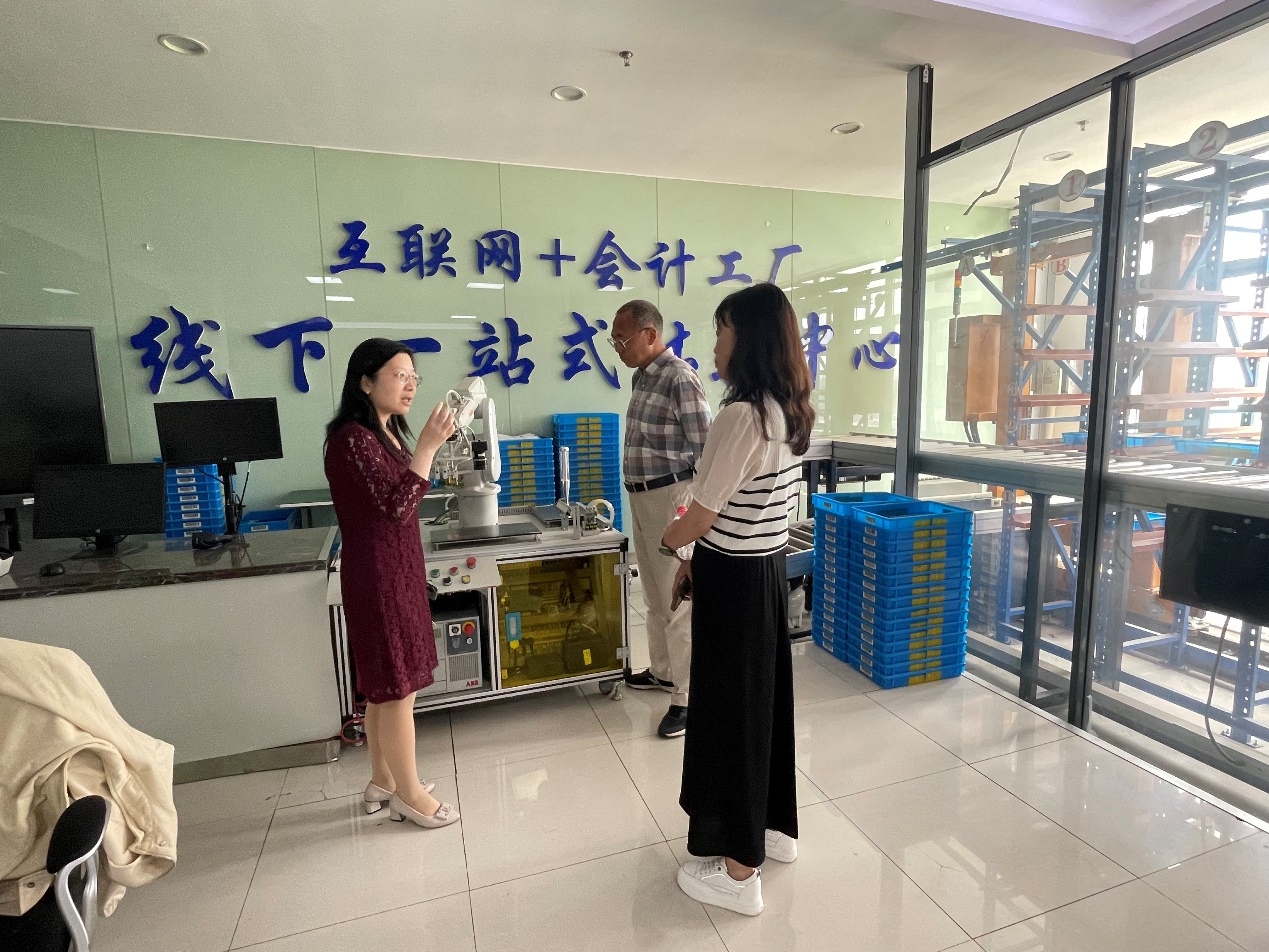 双方就人才培养、品牌建设、产教融合实训基地、产业学院建设、竞赛工作推进、带赛师资团队培养等方面进行深入交流,分享相关经验。会后,会计与审计学院副院长黄莉娟陪同祝刚一行前往互联网+会计工厂等实训基地参观学习。