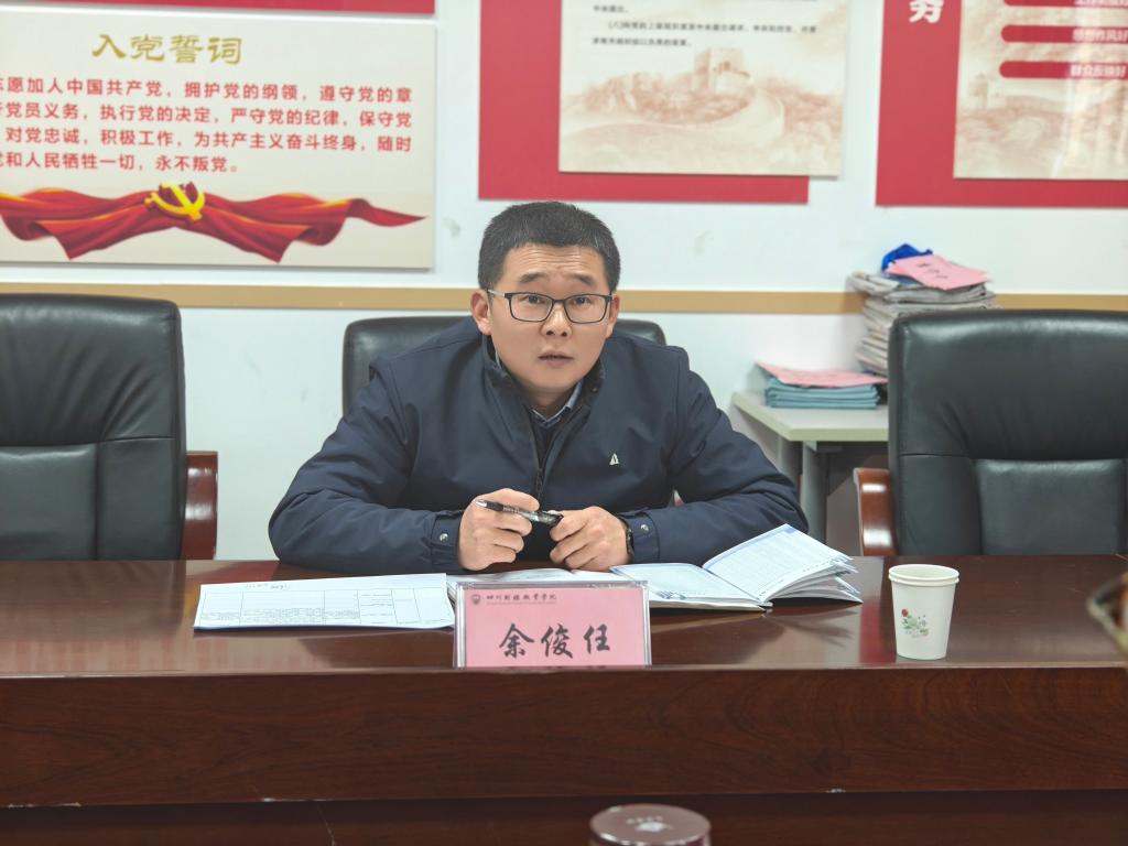 祝刚就财税学院整体情况向余俊任做汇报。祝刚从教职工规模,党总支分布,行政科室结构,教研室设置,成渝经济圈财税发展研究中心职能等方面情况向余俊任汇报了详细工作情况。祝刚介绍,自2020年财税学院从原财税金融系分离以来,迅速成长,发展到了41人的大家庭,师资水平明显提高、师资结构年轻化、高学历化势头明显,取得了教学、科研、社会服务、文化传承多方面的可喜成绩。