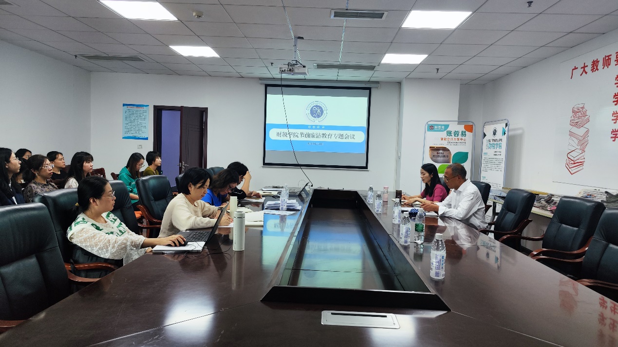 2023年9月26日下午,财税学院全体教职工在行政楼512会议室召开本学期第三次教职工会暨节前廉洁教育专题会议,本次会议主题为安排近期学院重要活动、传达领导会议精神,通报上级党委纪委对节日廉政工作要求。会议由财税学院院长祝刚主持并讲话,党总支副书记陈露发言。
