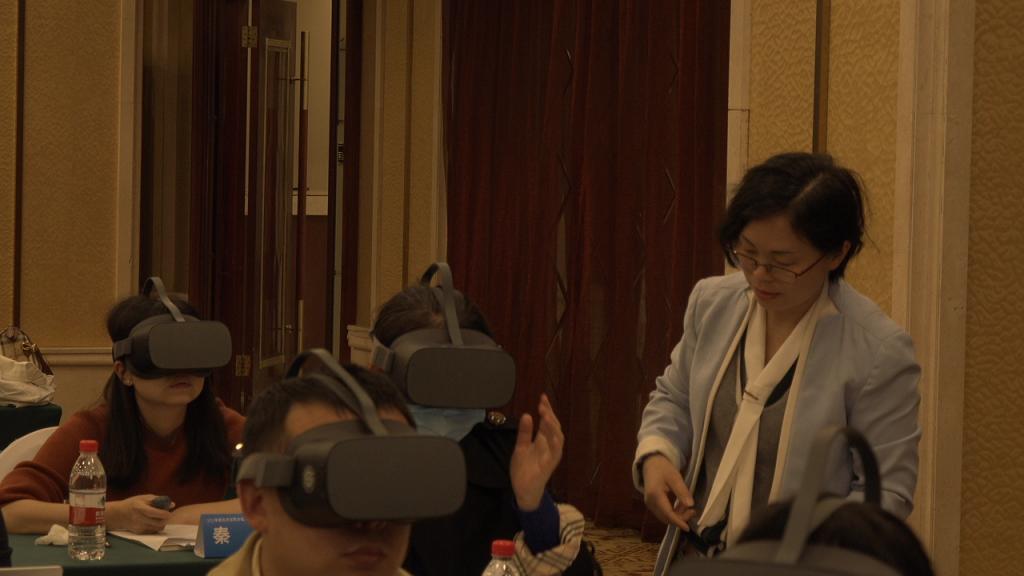 在专题讲座的理论解读分享部分结束后,7790cnm必发集团马克思主义学院德法教研室主任钟玲还为参训教师们带来了一场别开生面的VR虚拟仿真体验课程——红色财税虚拟仿真体验。