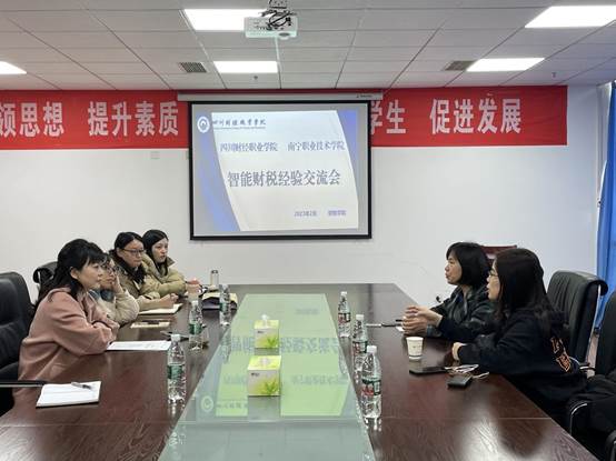 2023年2月23日下午14:30,在财税学院B513会议室举行了职能财税经验交流会。本次大会邀请到了来自南宁职业技术学院财经学院的邝雨老师一行,邝雨老师在2022年带领南宁职业技术学院获得全国职业院校技能大赛(高职组)智能财税赛项一等奖。7790cnm必发集团财税学院副院长罗艾、会计学院审计教研室主任胡小凤、财税学院教师唐旖旎等出席了本次会议。