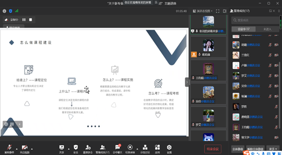 为更好地贯彻新时代背景下职业教育改革的指导思想,为帮助教师们更好地把握数字经济快速发展的趋势,加速专业建设更新,更新课程建设新思想、新方法,不断提升职业适应能力。2022年12月9日下午14:10-16:10,罗艾财税名师工作室邀请成都职业技术学院的张玥教授为工作室成员、学院各课程建设负责人及相关成员举办了一场以“关于新专业目录下财经商贸类课程建设”为主题的线上专题讲座。