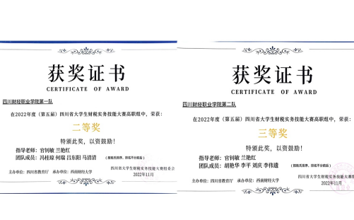 2022年12月9日,我院再添技能大赛喜讯,财税学院拿到四川省大学生财税实务技能大赛二等奖和三等奖的好成绩。