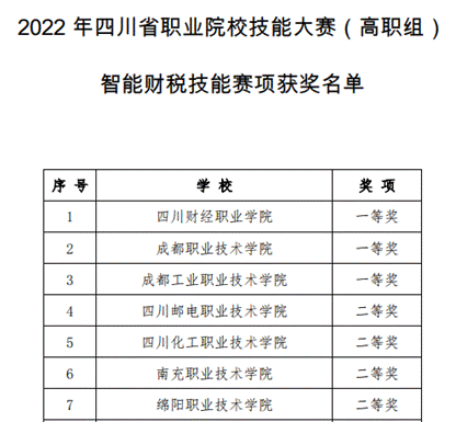 2022年11月12日,财税学院学子参赛再传捷报,取得2022年四川省职业院校技能大赛(高职组)智能财税技能赛项四川省一等奖第一名的好成绩!