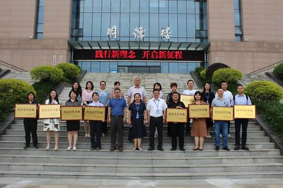 本次会议还进行了授牌仪式。张华、符刚向校企合作单位授予10块“校企合作基地”铭牌,双方领导亲切合影,定格了财税学院确定10家规模以上、专业对口的校企合作基地建成的重要时刻。