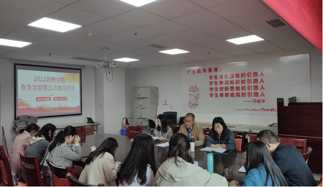 2022年3月22日下午,财税学院全体教职工在行政楼512会议室召开本年第五次教职工例会。会议由财税学院祝刚主持并作工作布置,党总支副书记陈露、副院长罗艾作有关工作安排。