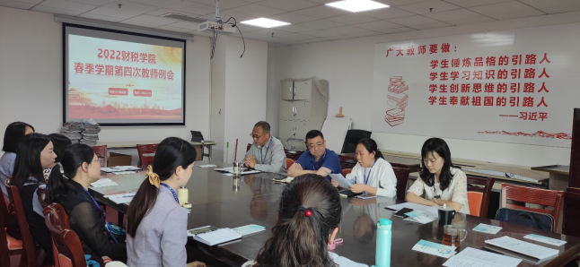 2022年3月15日下午,财税学院全体教职工在行政楼512会议室召开本年第四次教职工例会。会议由祝刚院长主持并作工作布置,学院纪委书记敬华、组织人事部陈明珠老师出席会议,陈露书记、罗艾副院长就有关工作做安排。