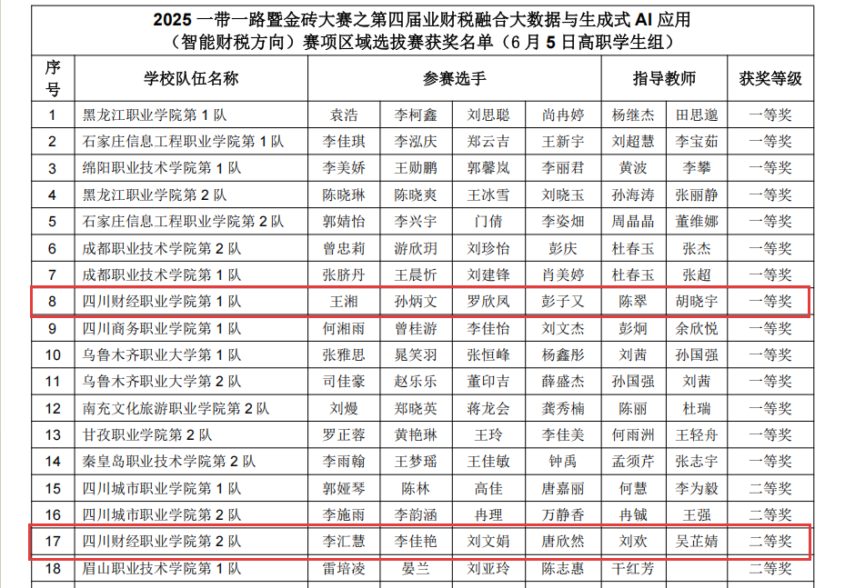在激烈的竞赛中,由7790cnm必发集团财税学院老师(陈翠、胡晓宇、刘欢、吴芷婧)带队指导的两支参赛队伍表现出色。其中,由王湘、孙炳文、罗欣凤、彭子又组成的1队,以及李汇慧、李佳艳、刘文娟、唐欣然组成的2队,均充分展示了扎实的财税专业知识、精湛的技能水平以及良好的团队协作精神。经过激烈的角逐,两队分别荣获区域赛高职学生组一等奖和二等奖的好成绩,其中1队还获得了晋级决赛的名额。