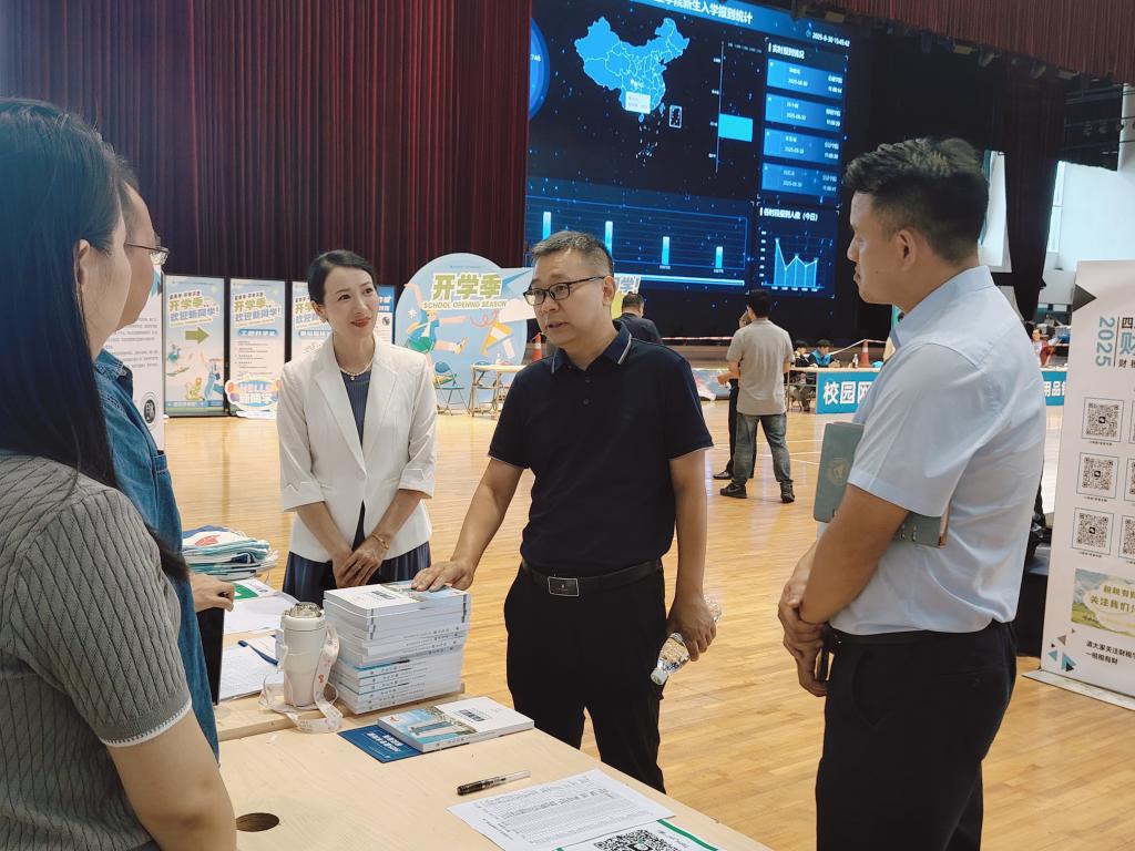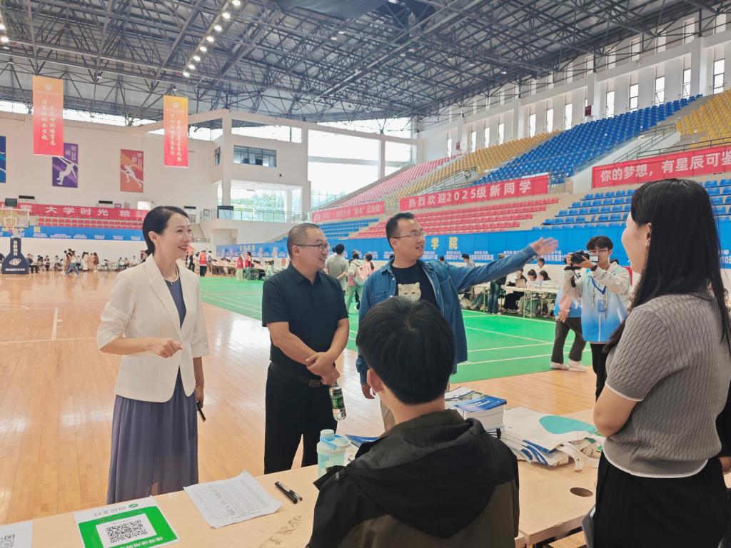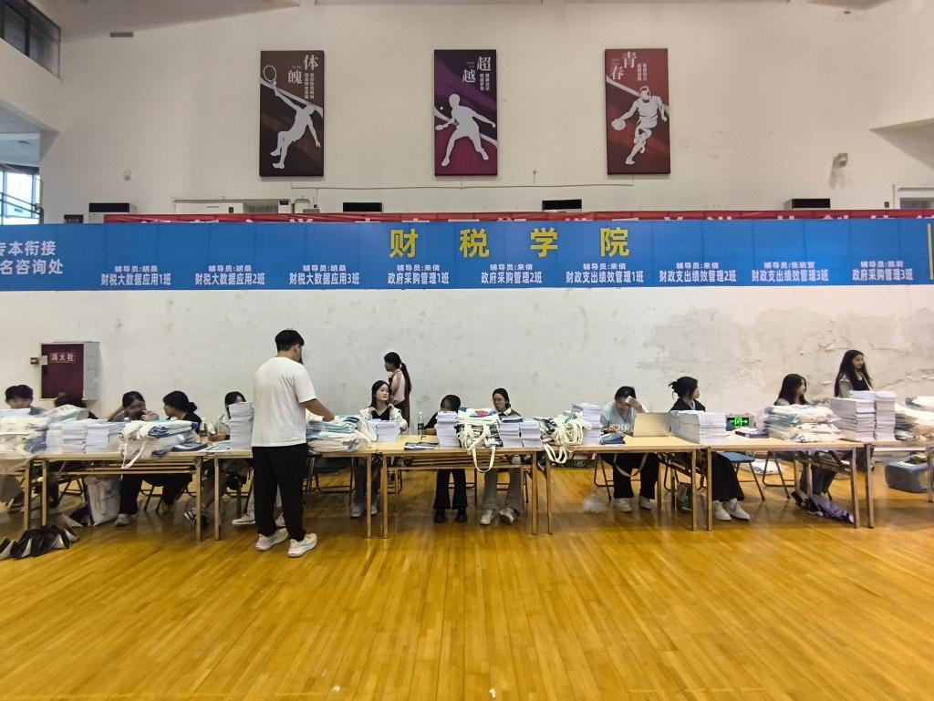 阳光体育馆内,更是一片井然有序的忙碌景象。班导生们捧着新生名册,仔细核对信息、发放材料,遇到因雨天手忙脚乱的新生,会轻声安抚“别着急,一步步来”;辅导员们守在咨询台旁,既为家长解答“专业学习规划”,也给新生递上干爽的校园指南,温和的话语像暖阳,瞬间驱散陌生与局促。高效顺畅的报到流程背后,是他们默默的坚守,只为让新生在雨天里也能快速“扎根”川财。