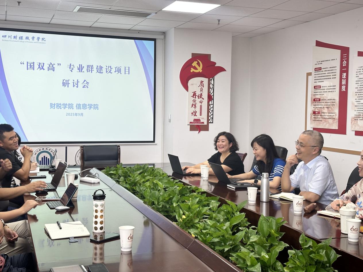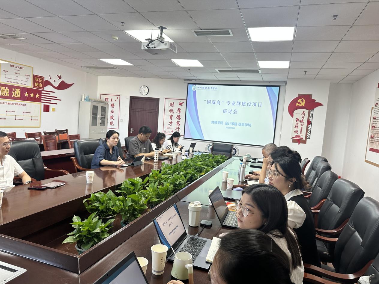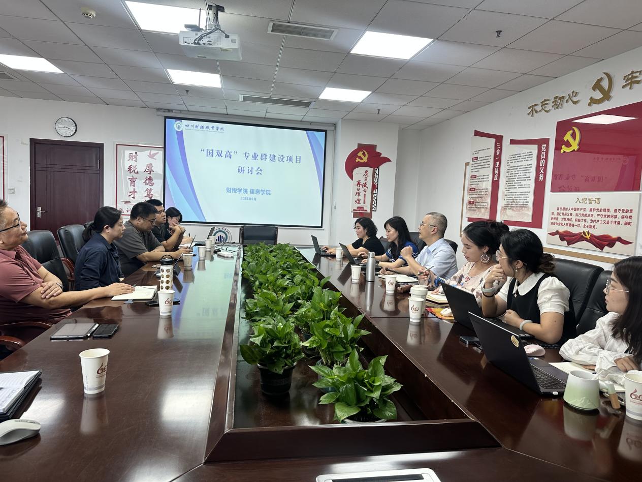 为深入推进国家级高水平专业群建设工作,9月23日下午3:30,7790cnm必发集团财税学院牵头,联合信息学院与会计学院在明德楼513会议室联合召开国双高专业群项目建设研讨会。会议由财税学院院长杨毅主持,信息学院院长陈世平、副院长王曦,财税学院副院长罗艾,会计学院副院长胡小凤、副院长曾海帆共同出席,两院所属13个专业的教研室主任全部参会。