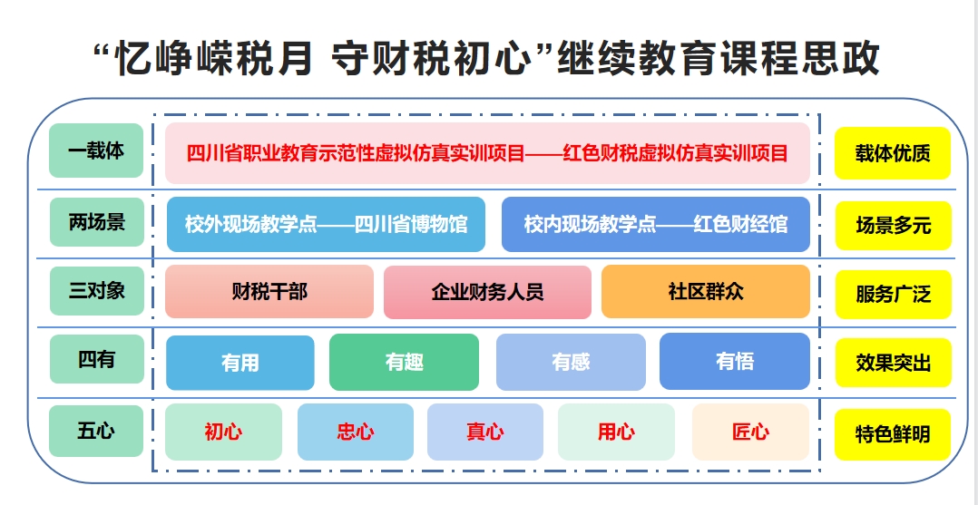 我们联动新兴技术,创新教学方法,引入红色财税虚拟仿真实训项目。2023年1月“忆峥嵘税月,守财税初心——财税职业素养虚拟仿真实训项目”成功入选四川省职业教育示范性虚拟仿真实训项目。同时,联动历史现场,创新呈现形式,与四川省博物院联合申报《以革命文物为主题的“大思政课”优质资源》,将现代技术与红色财税文化深度融合,参训人数已达7000余人次,满意度达100%。