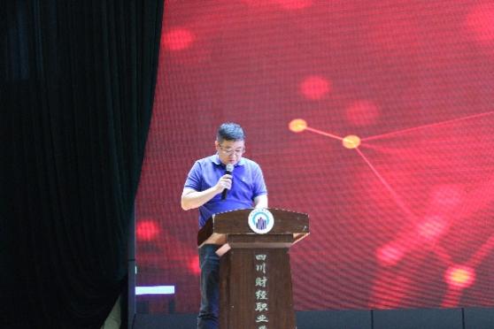 党委副书记、纪委书记敬华致辞。他表示“红色税月”系列活动深入校园,活动丰富多彩,取得了令人满意的活动效果,期望学生们学习更多的财税知识、奋力向前,发扬红色财税革命传统,争做新时代的弄潮儿。同时也表达了对获奖同学们的祝贺,向付出汗水的老师们及参与此活动的同学们表达感谢。
