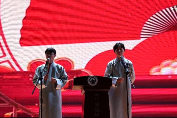 相声《税迷》,演员表演幽默风趣,现场再一次响起热烈掌声。