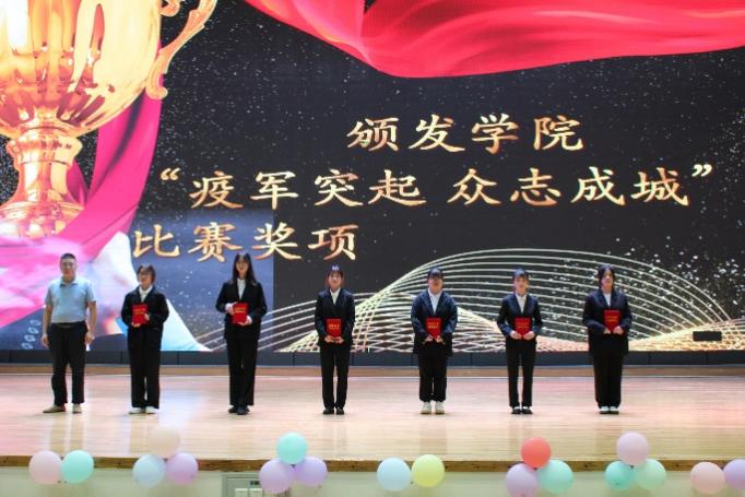 颁奖典礼环节中,学院各位领导有序为获奖学生颁发荣誉证书。