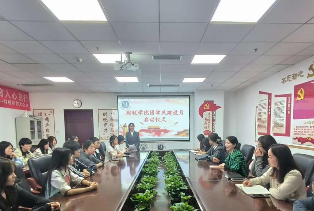 2025年4月8日,为积极响应学工部《关于开展 2025 年学风建设月活动的通知》要求,财税学院于明德楼512教室隆重组织召开了“学风建设月”启动仪式。财税学院党总支书记陈露出席并致辞,全体专兼职辅导员以及各班学生代表齐聚一堂,共同见证这一意义非凡的时刻。