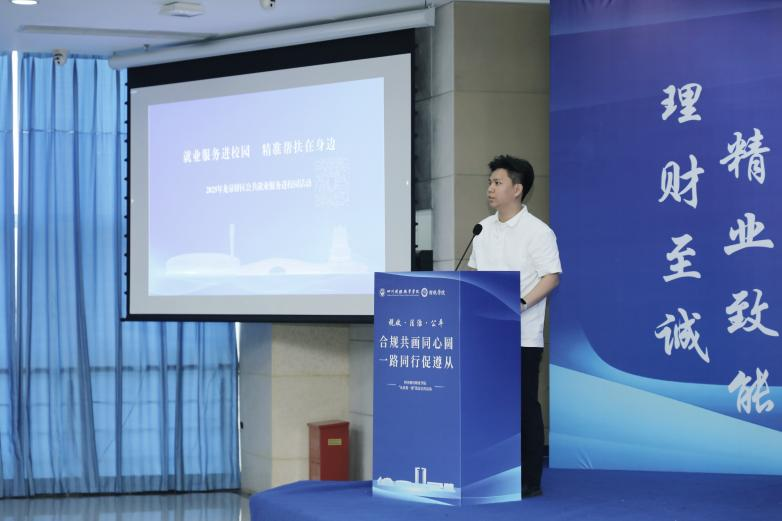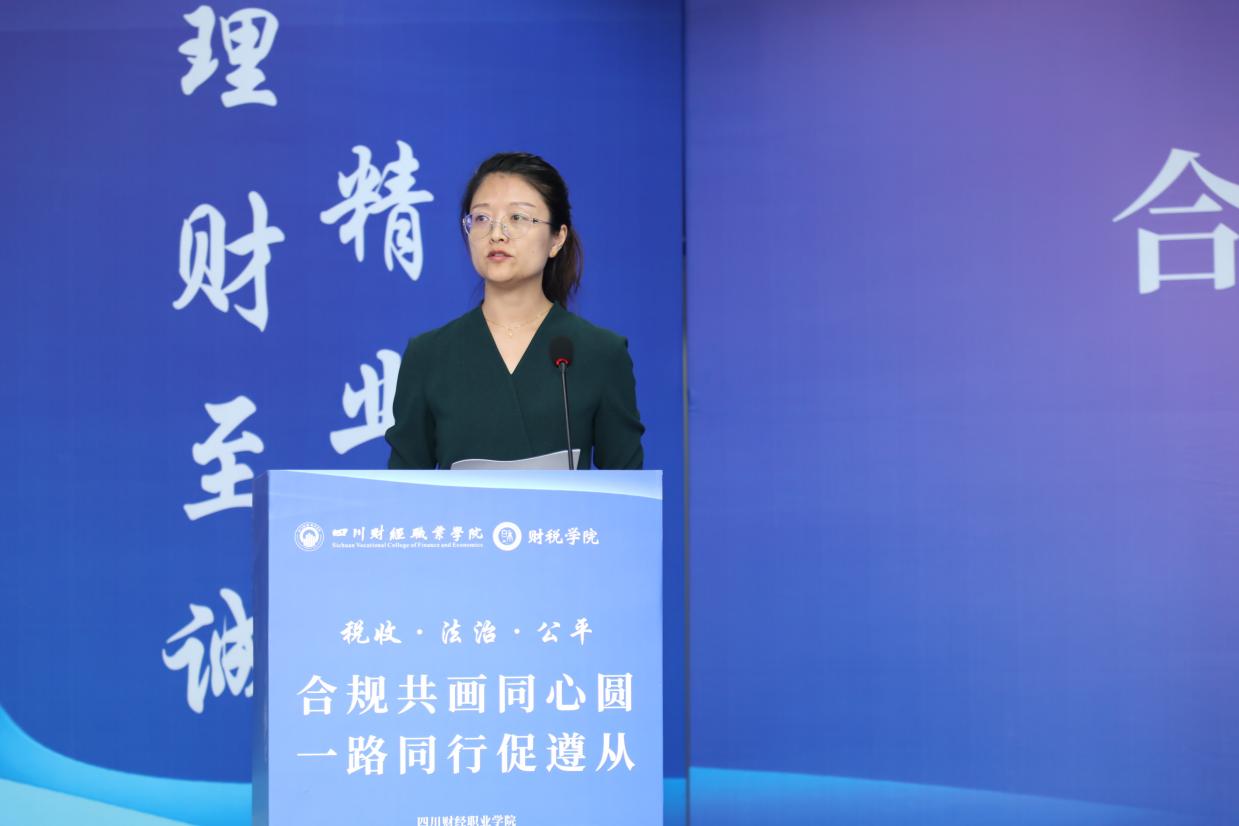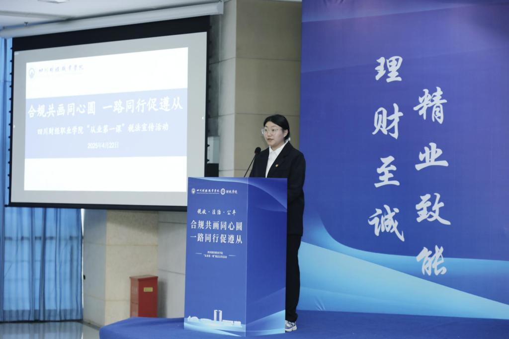 在政策解读与理念分享环节,龙泉驿区税务局党委纪检组黄婷以“向阳而生 青廉同行”为主题,为毕业生讲授从业廉洁教育课,强调职业道德与法治意识的重要性;四川大华税务师事务所汤莉结合行业经验,分享“税护青春路 法治筑未来”职业发展理念;龙泉驿区人社局高级职业指导师冯靖松则通过《“职”点迷津》讲座,为学生剖析职业规划路径;2023级财税专业学生朱羽姝代表学子表态,将恪守“诚信为本、法治理念”,争做新时代财税人才。