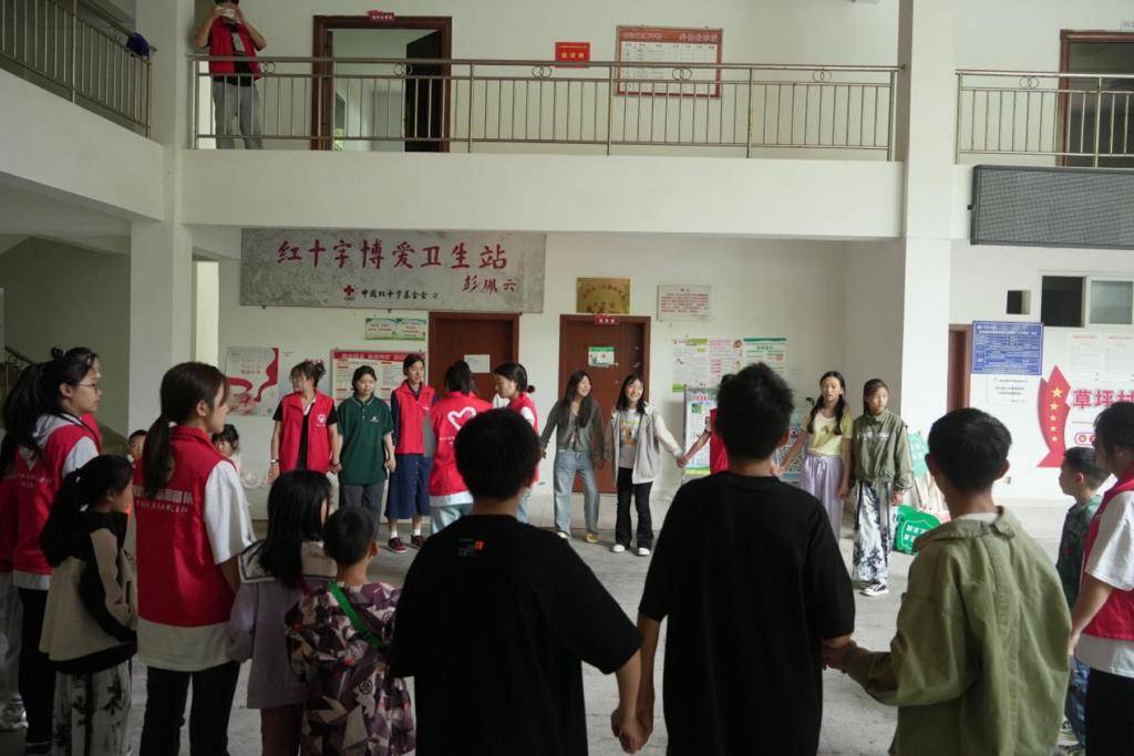 上午,实践团成员们来到了三江镇草坪村,为小朋友们精心准备了一系列寓教于乐的活动。首先,志愿者带领小朋友们一起参与了“拍拍操”等趣味游戏,让孩子们在欢声笑语中锻炼了身体,增强了团队协作能力。志愿者还带领小朋友们加入“天气预报”的小游戏,向孩子们普及了气象知识,拓宽了他们的视野。