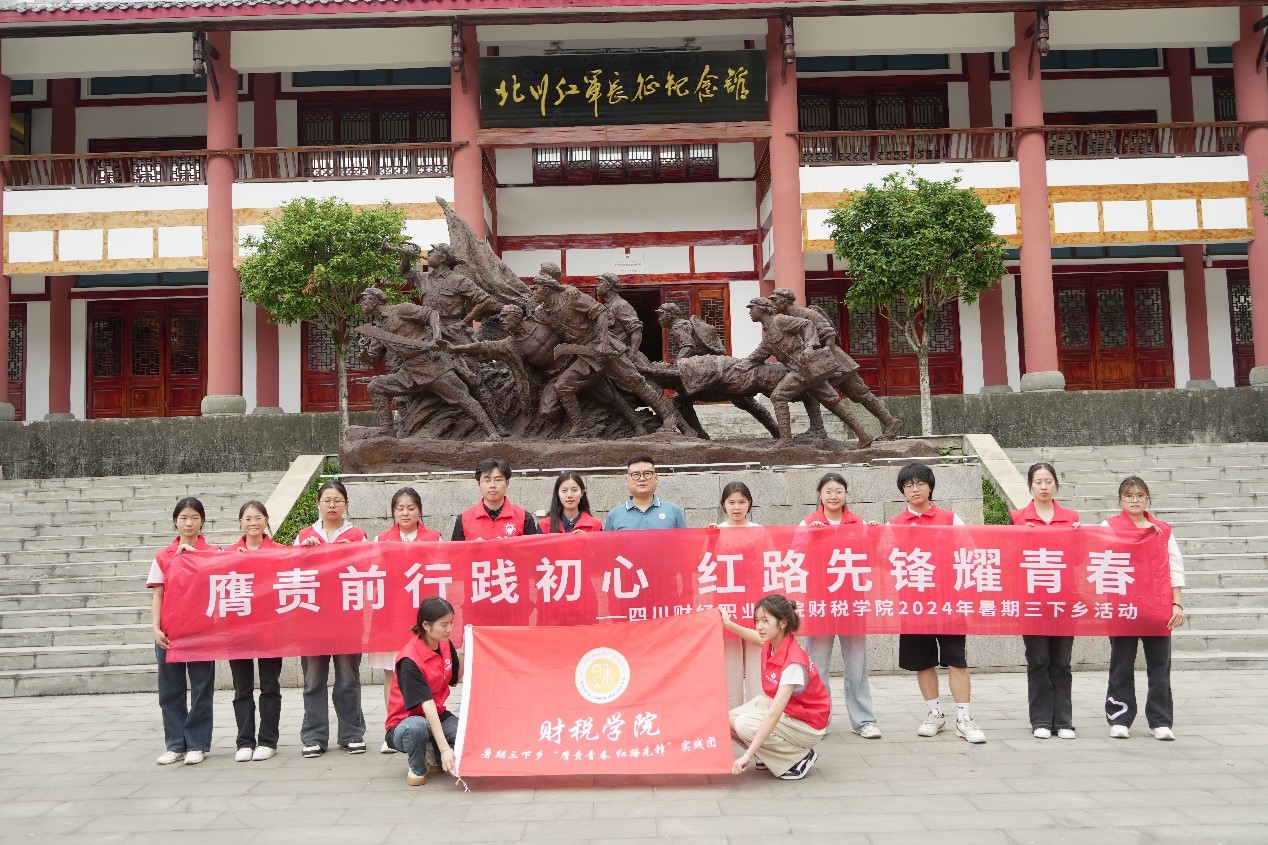 2024年7月7日清晨,阳光初照,财税学院的师生们汇聚于学院前门,整装待发。党总支书记陈露发表了慷慨激昂的动员讲话,她强调:“此次‘三下乡’活动,是我们传承红色基因、弘扬长征精神的重要实践。希望大家能够珍惜机会,深入基层,感悟历史,将所学知识与国家命运紧密相连。”在师生的热烈掌声中,财税学院季宁宁老师带领的15人实践团队正式踏上了前往北川红军长征纪念馆的征途。