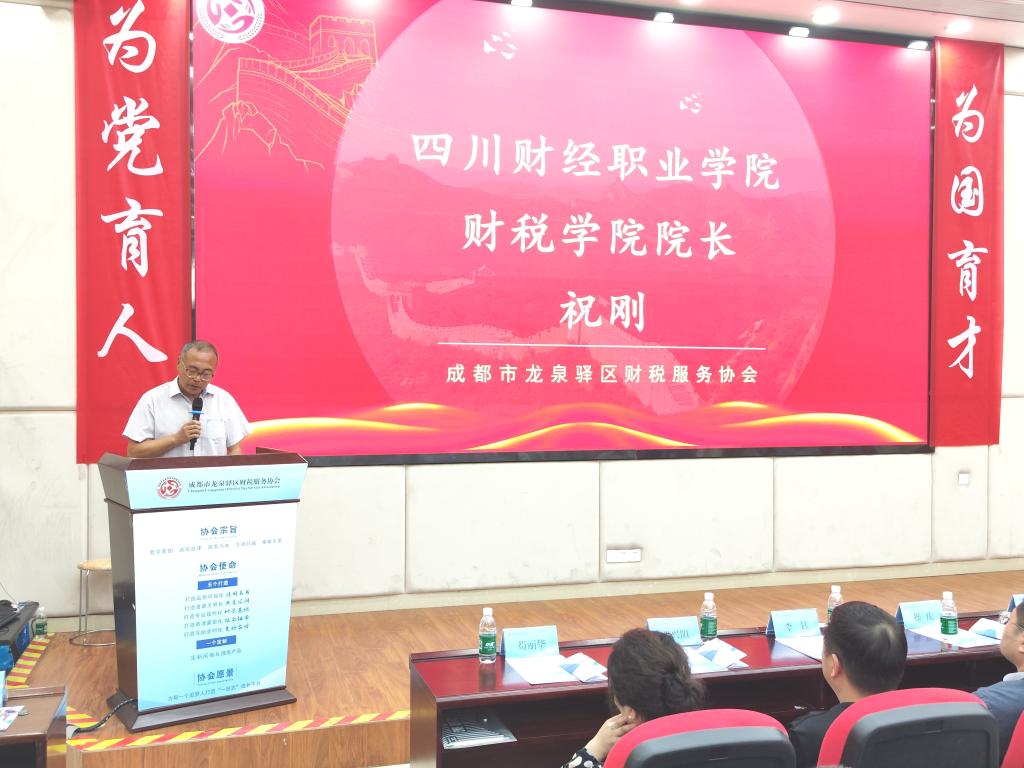 427日下午,龙泉驿区财税服务协会揭牌仪式在7790cnm必发集团B213会议室顺利举行。财税学院院长祝刚作为高校代表受邀参加揭牌仪式并发言。