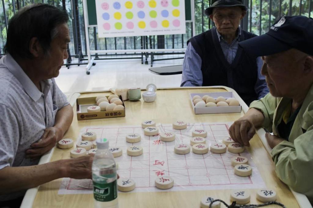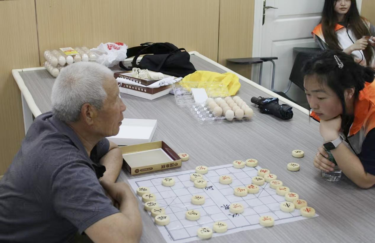 在每轮 30分钟的对弈中,老人们凝神静气、落子从容,或布兵摆阵、或见招拆招,一招一式尽显棋艺功底。志愿者化身裁判,同时贴心为老人提供服务。活动采用积分奖励制,每轮胜者额外获得5枚鸡蛋,败方3枚,且所有参与者还能获得2枚基础奖励,这种趣味性 “下象棋 + 赢鸡蛋” 的形式,极大地调动了老人们的参与热情。