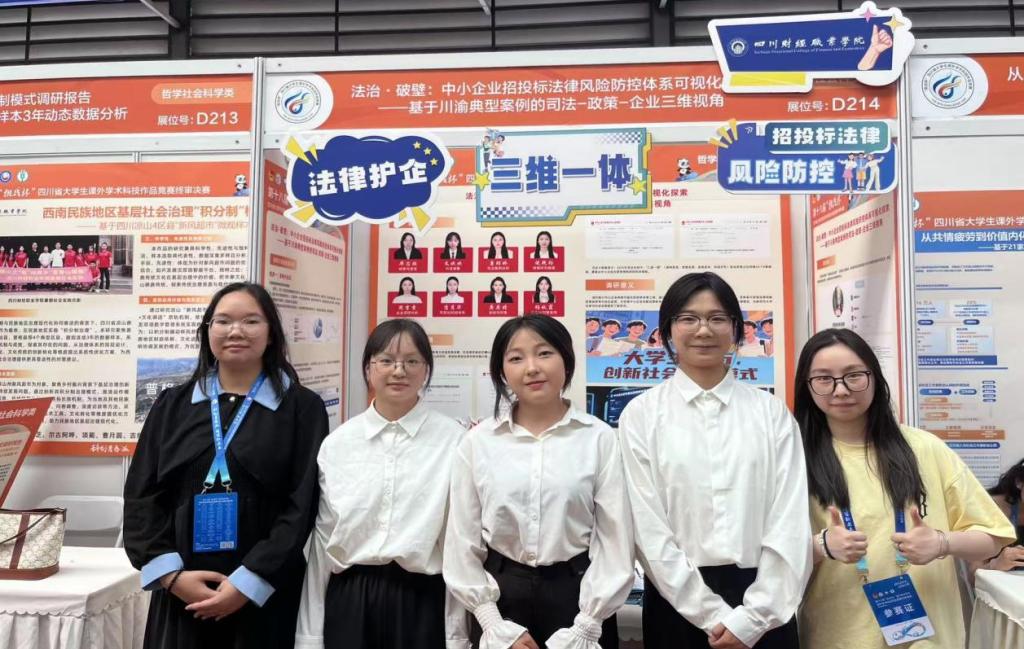 2025年5月24日至26日,第十八届“挑战杯”全国大学生课外学术科技作品竞赛在四川省成都医学院新都校区蜂巢体育馆举办,本届大赛共吸引四川省121所高校、18万余名青年学生参与,共计报送2.2万件作品,近1400件作品进入省赛初评,共有92所高校,505件作品进入省赛终赛决赛。为争取在本次比赛中取得佳绩,我院派出由毕芯瑕、蒲月华、周吉香、倪艳钰、龚荷晴、文欢欢、唐胡娇、杨秋霞八名同学组成的“法治·破壁”团队参赛,法律教研室主任戴娜娜、专任教师田一然、李早早负责全程指导。经过激烈角逐,“法治·破壁”团队最终荣获团体二等奖。
