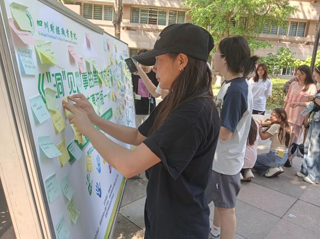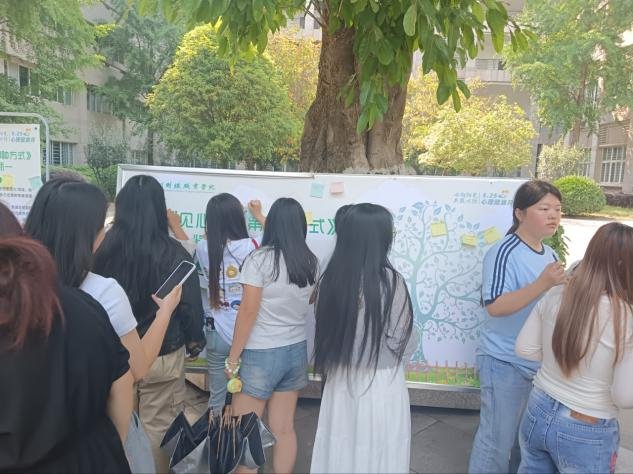 5月20日下午,“洞见心事的第N种方式”情绪漂流瓶活动在AB栋空地启幕。现场设置“心房树洞漂流瓶”墙,参与者用蓝/黄色便利贴匿名书写压力烦恼,粉/绿色便利贴记录快乐与希望。“摘取蓝色便利贴-撰写暖心回复-粘贴对应位置”的互动机制,形成“情绪输入-回应-输出”的良性闭环。活动时间持续至5月25日,为同学们提供了匿名倾诉、互助解压的暖心港湾,在分享与倾听中传递理解与支持。